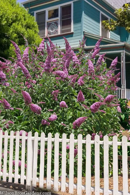 Growing 8 to 10 foot tall and 4 to 5 feet wide, the Pink Delight Butterfly Bush is ideal for use as a specimen, in groupings or as a colorful hedge or background in landscape and perennial borders. A fine addition to butterfly and hummingbird gardens, purple theme gardens, Xeriscape gardens (low water needs and cottage gardens.